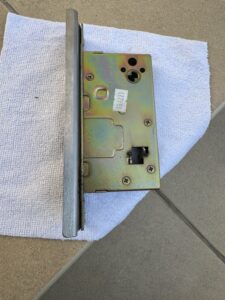 暗くてわかりづらいけどデッドボルトに汚れが蓄積