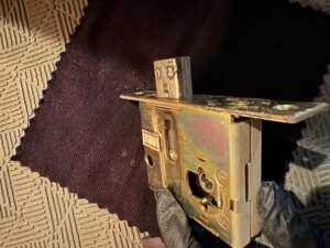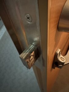 暗いからわかりづらいけどデッドボルトに汚れが蓄積