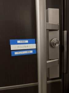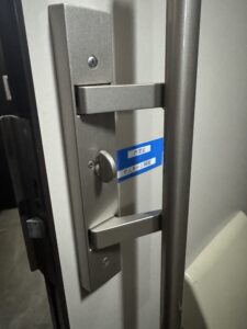 ドアスコープが真上にあるし、縦長のドアハンドルが邪魔だけど