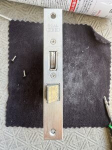 ドアハンドルを外して原因の可能性が高い錠ケースの取り外し